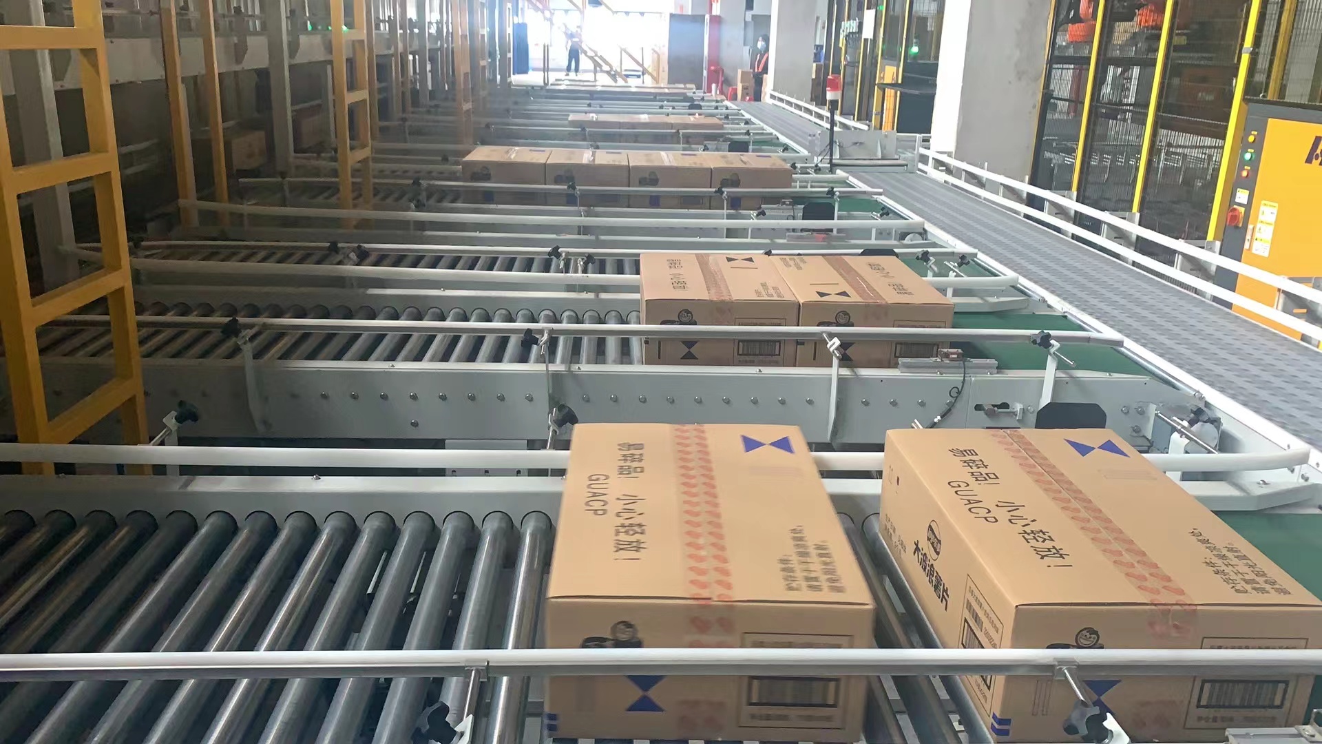 分拣机一般由输送机械部分、电器自动控制部分和计算机信息系统联网组合而成。 它可以根据用户的要求、场地情况,对条烟、整箱烟、药品、货物、 物料 等,按用户、地名、品名进行自动分拣、装箱、封箱的连续作业。